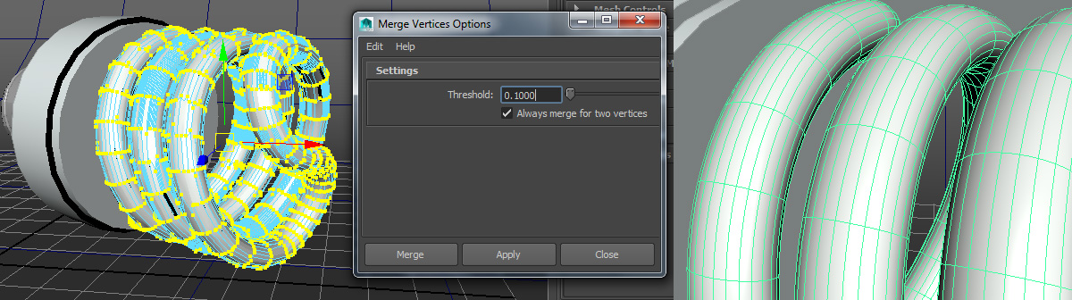 Aber auch die Lösung des Problems ist recht einfach: Wir verbinden die Vertices automatisch mit dem Merge-Befehl: